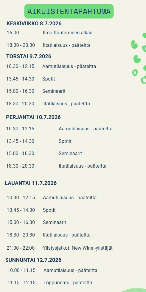 New Wine -kesätapahtuma järjestetään Jämsän Himoksella 8. – 12.7.2026.