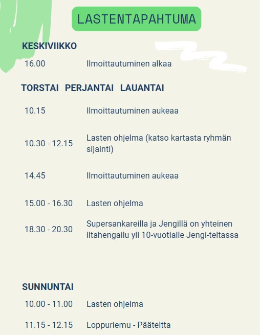 Kesätapahtumamme on koko perheen tapahtuma, jossa on omaa ohjelmaa lapsille, nuorille ja aikuisille.